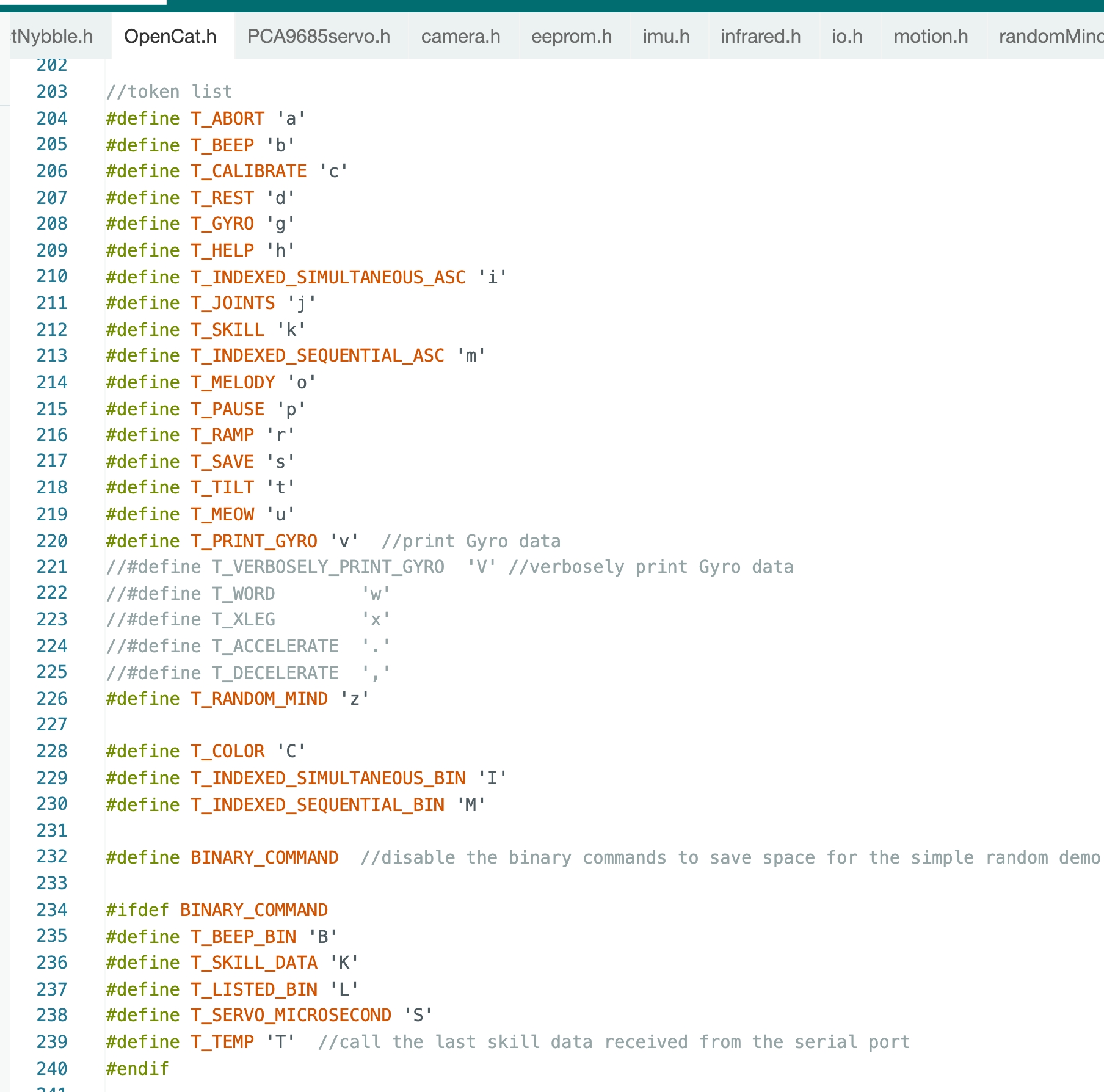 You can refer to the macro definitions in OpenCat.h to utilize the most updated sets of tokens.