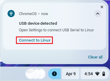 After using the USB uploader and USB data cable to connect the NyBoard and Chromebook, you will see a prompt: Please click Connect to Linux.