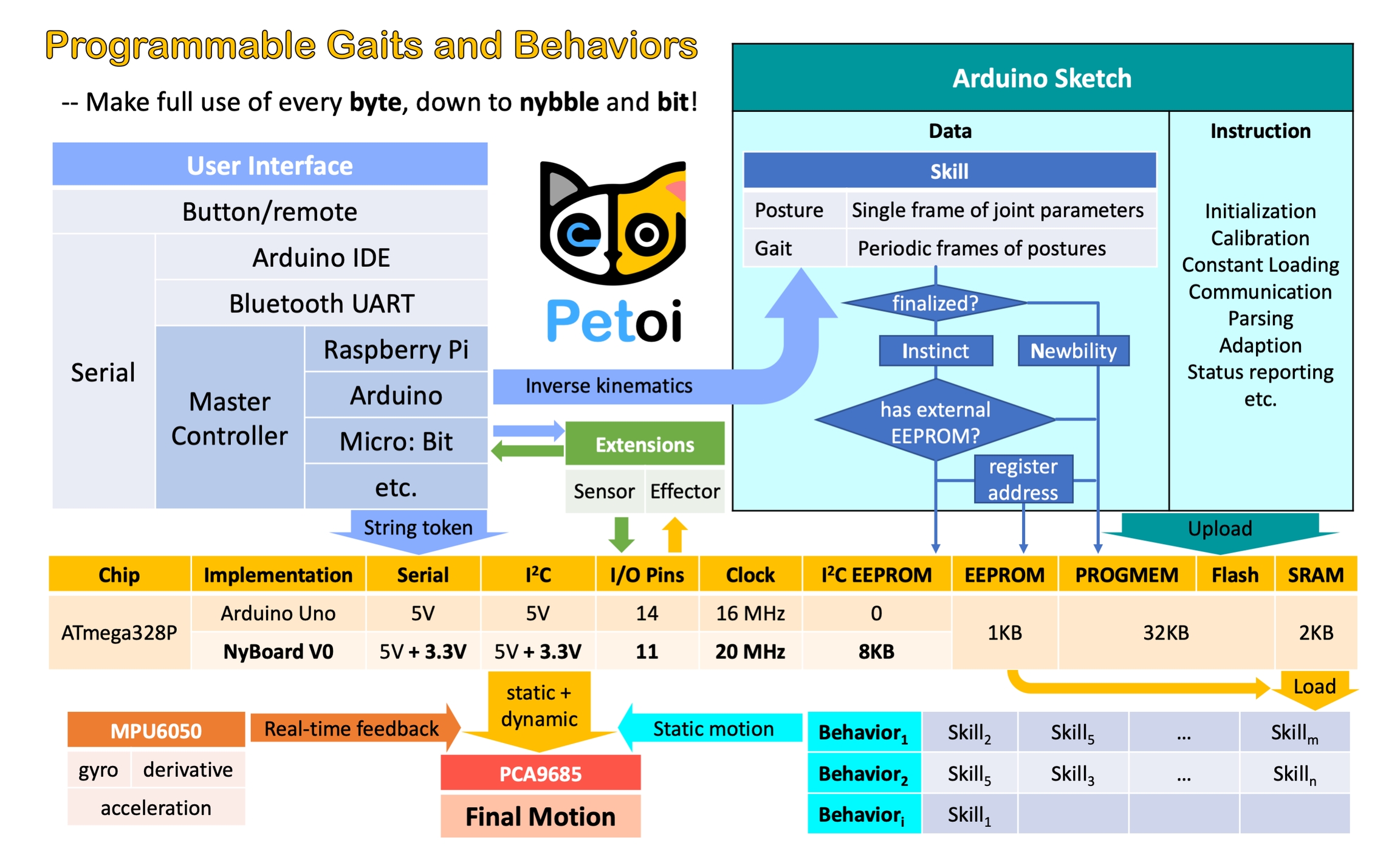 Congratulations! Now, you have finished the standard setup steps. You can just read the source code to dive deeper into the program. The skills are saved in multiple places on a NyBoard due to ATmega328P's limited resources. The following diagram may give you some hints to help you understand.