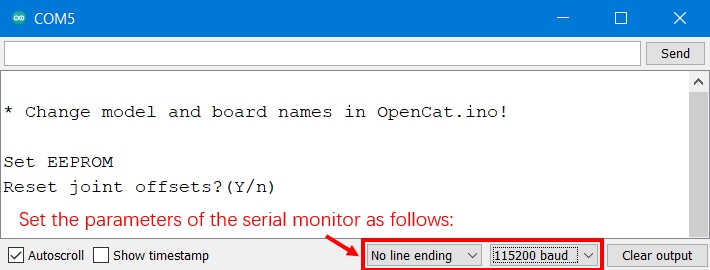#define MAIN_SKETCHOpen the serial monitor. When the serial monitor prints "Ready!", the robot is ready to take your next instructions.