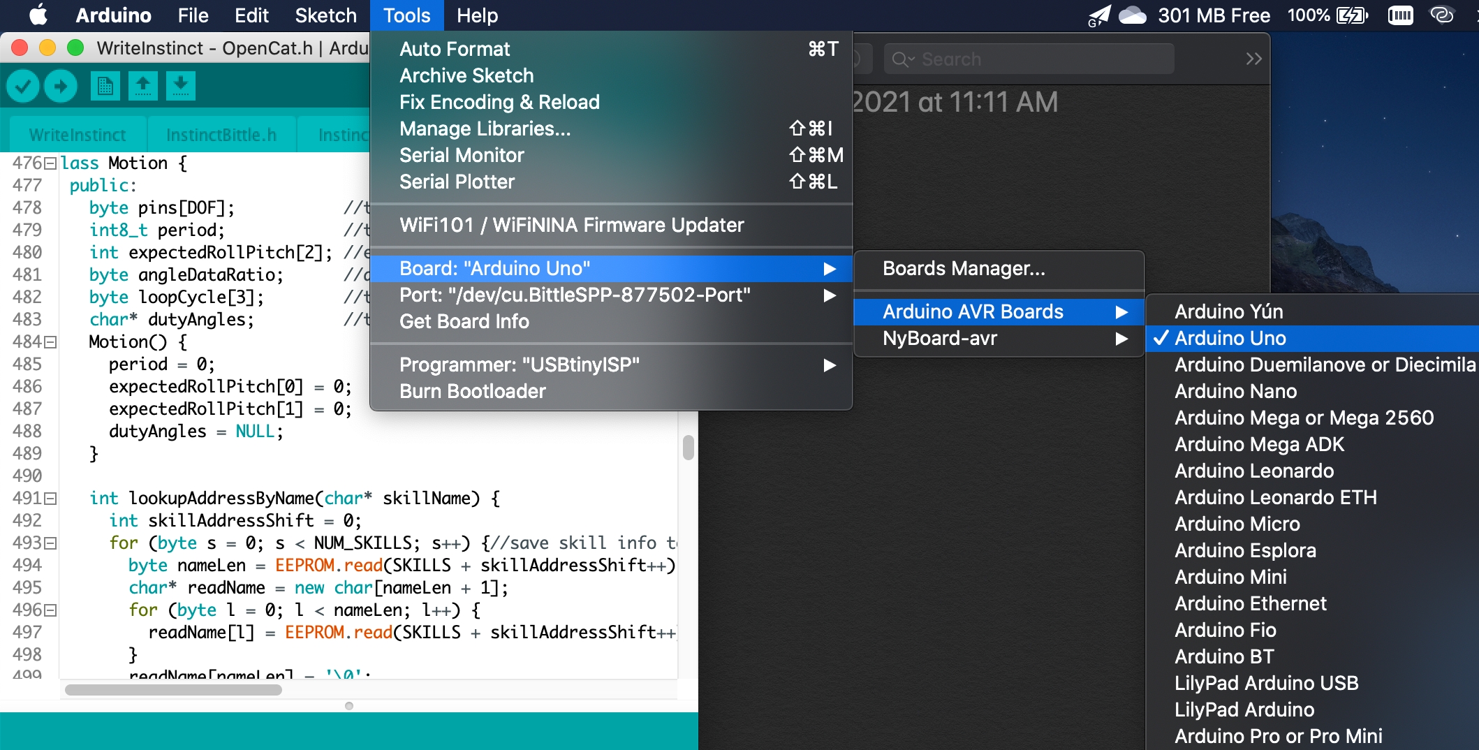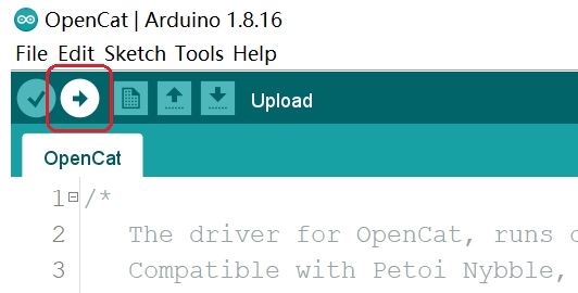 If you download the Zip file of the codes, you will get an OpenCat-main folder after unzipping. Rename it to OpenCat before opening the OpenCat.ino, so that the two names match.