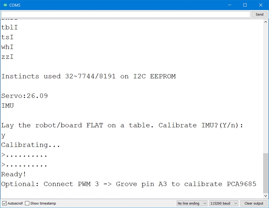 After the IMU calibration, there's an optional step to calibrate the servo driver.