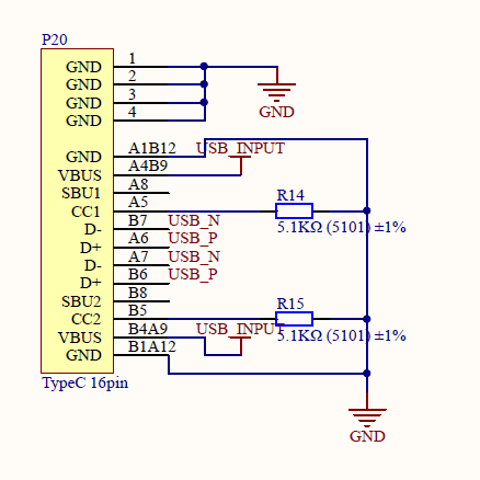 We use the USB Type-C port; 2 resistors, CC1 and CC2, are added as the identifier.