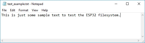 In the "data" folder, you should put the file which you want to save into the SPIFFS file system. e.g., create a .txt file that contains some text named "test_example". as following: