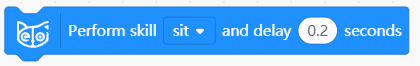 Use this block to let the robot perform skills pre-built on the robot's main board. Skills from "sit" to "zero" are postures (containing only one action frame). Skills from "boxing" to "sniff" are behaviors (containing multiple posture frames and are performed only once). Skills from "stepping" to "trotRight" are gaits (containing multiple posture frames, and are repeated in periodical loops until stopped).