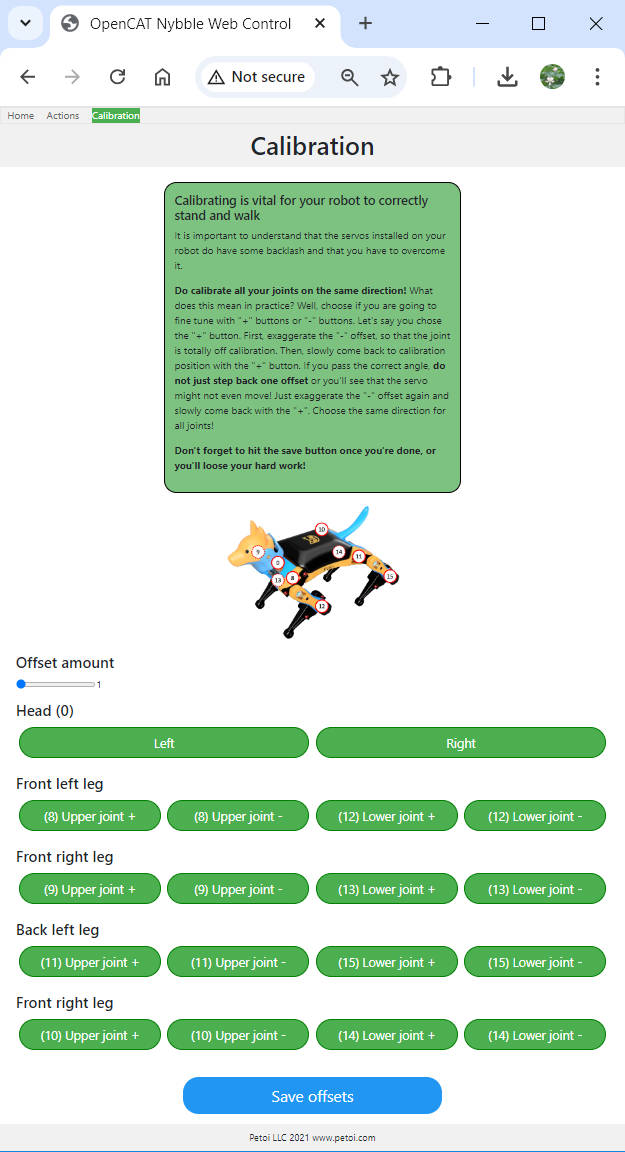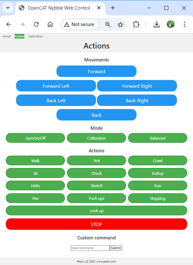 Enter the WiFi module's IP address in the web browser, and you can now control the Bittle through WiFi!