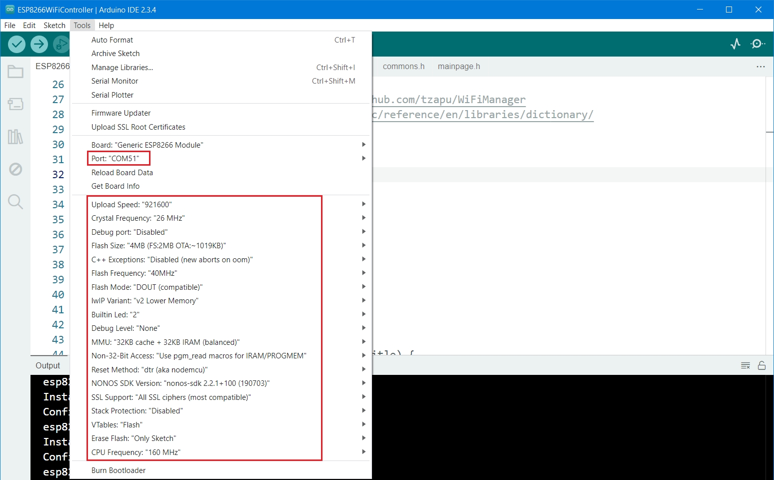 After downloading the board support package, we select Board -> ESP8266 -> Generic ESP8266 Module.