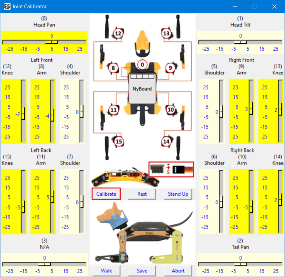 Robots can be precisely calibrated using the Petoi Desktop App.