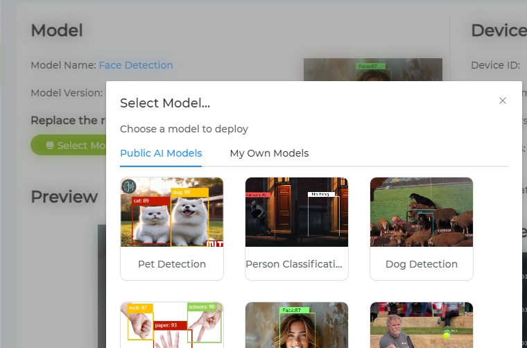 Grove Vision AI V2 can be deployed via an online website, which itself has a rich resource of models for you to choose from, so in addition to training your own models you can also use the models directly from the website.