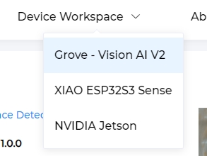 At the top of the page, you will see three columns titled: AI Models, Device Workspace, and About SenseCraft AI. click on Device Workspace and select Grove - Vision AI V2.