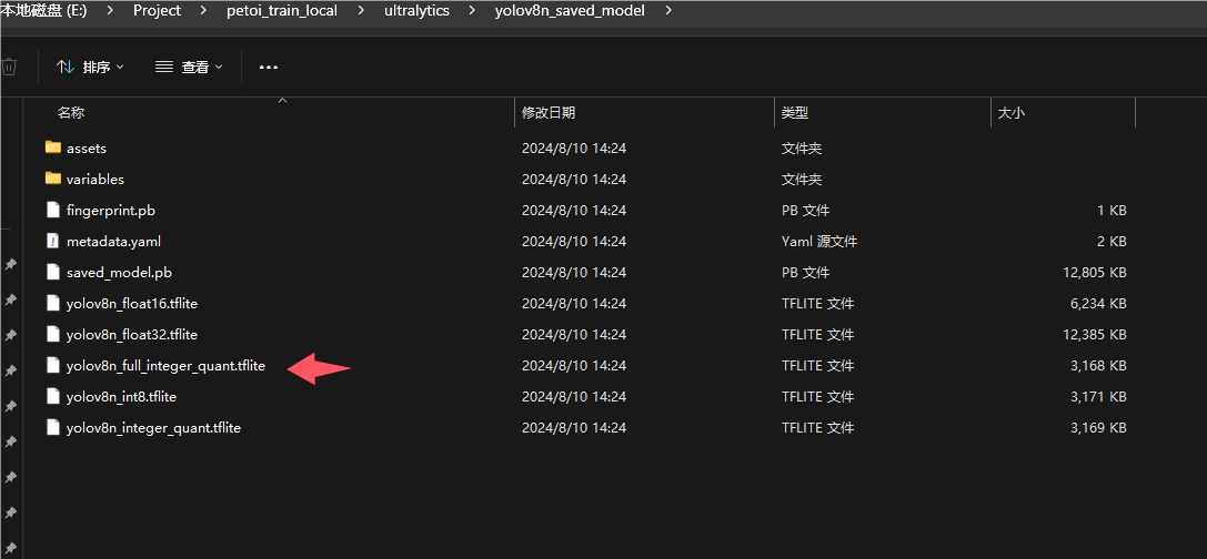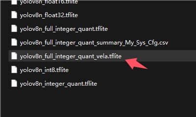 You will see a yolov8n_saved_model folder in the current folder containing the yolov8n_full_integer_quant.tflite model file.