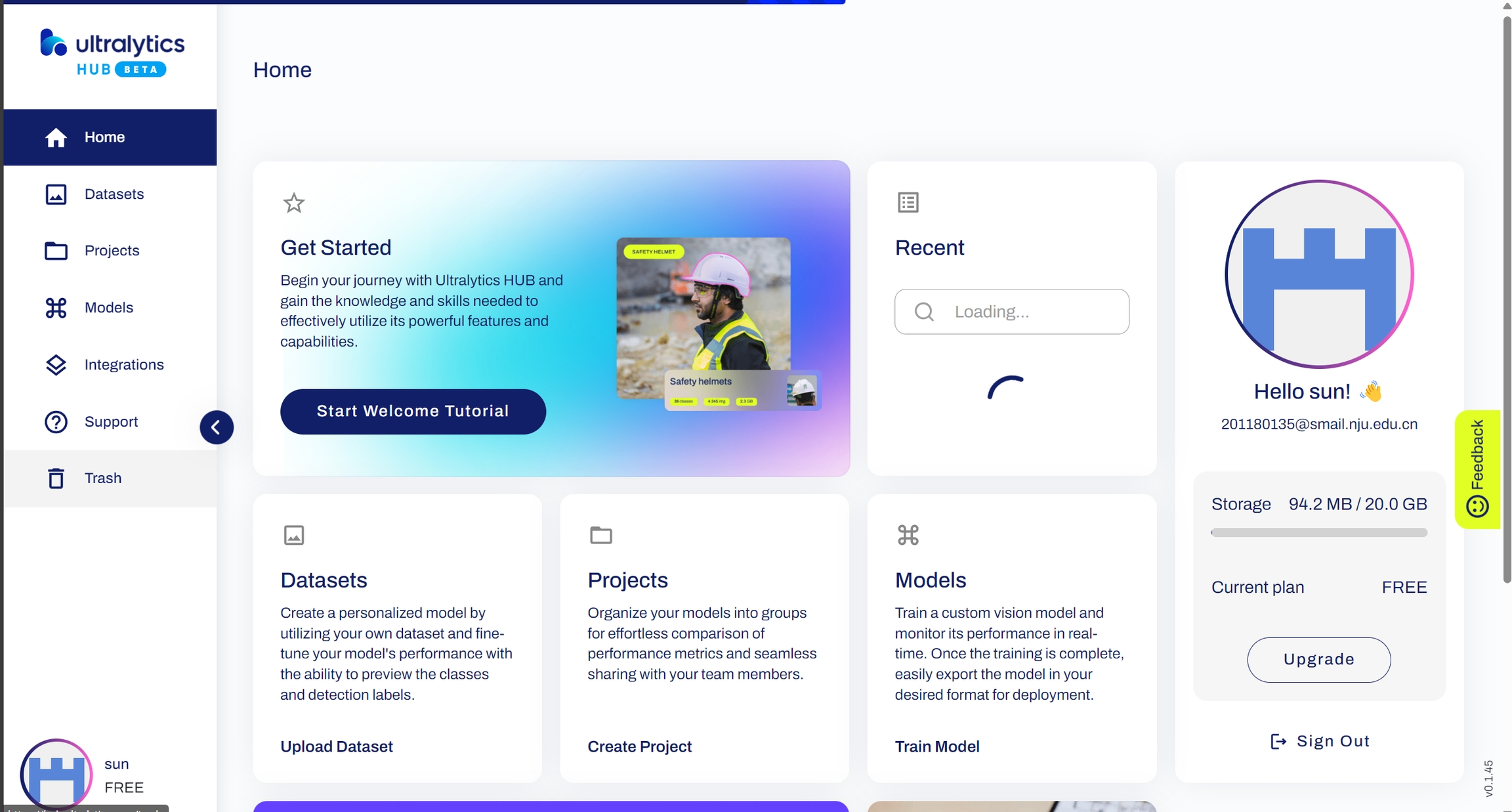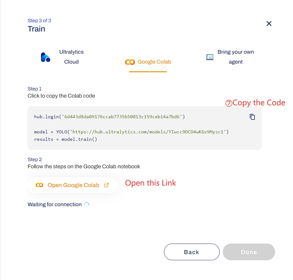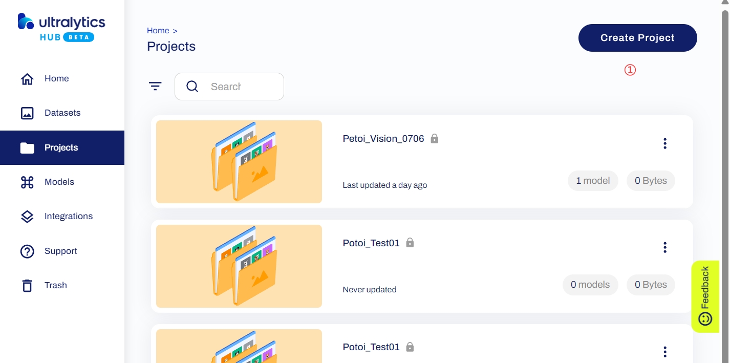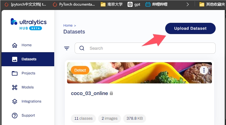 The ultralytics hub supports the training of users' own datasets. See the subsequent section for how to make and upload a dataset.