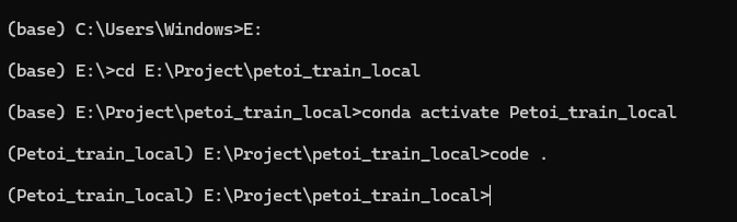 Enter the following commands to enter the work command, activate the environment, and open vscode (note that you replace the working directory and environment names with your corresponding names).