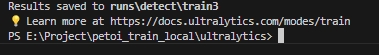 At the end of the training, you can find your trained model at the location where the model is saved as shown on the command line (e.g. my model is saved at runs\detect\train3)