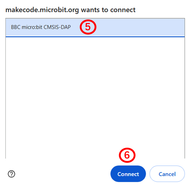 Select BBC micro:bit CMSIS-DAP in the pop-up window and then select Connect. At this point, our Micro: Bit has connected successfully.