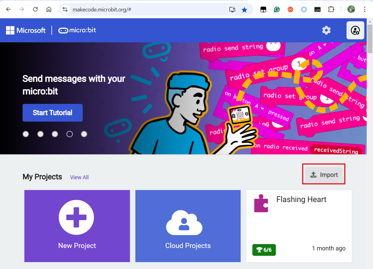 You can download the program file(microbit-JoyStick.hex), then import the program to the programming platform MakeCode as follows: