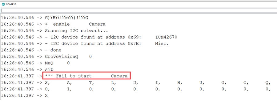 After uploading, open the serial monitor and send the serial command "XC" to switch to using the camera mode.