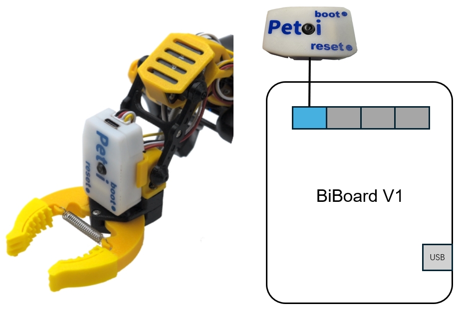 Fix the end connected to the camera to the robot's head (included in Bittle's / Bittle X's mouth or attached to Bittle X+Arm's robotic arm).