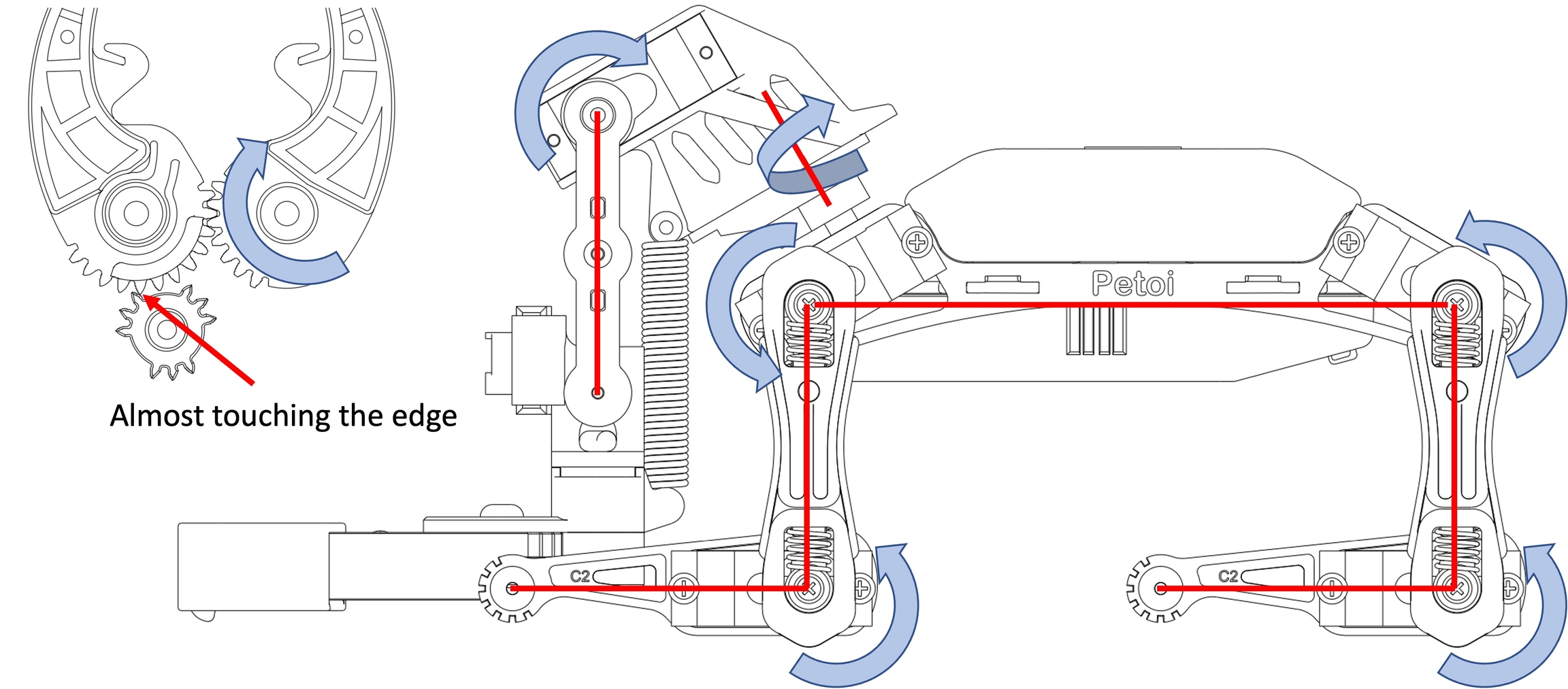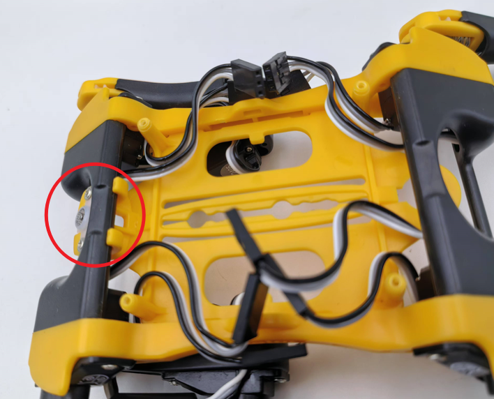 For the construction kit, please install the servo-related components as shown in the picture (calibration mode) and ensure they are perpendicular to each other (the upper leg is perpendicular to the torso, and the lower leg is perpendicular to the upper leg).