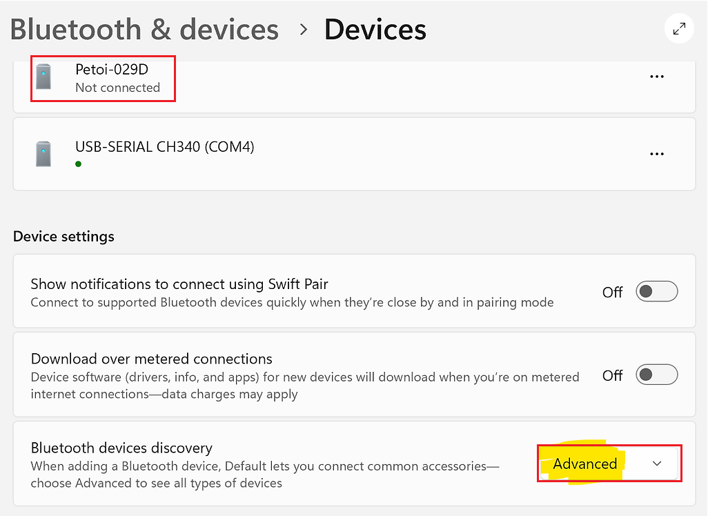 I'm on Windows 11 and cannot find the robot in the Bluetooth device list