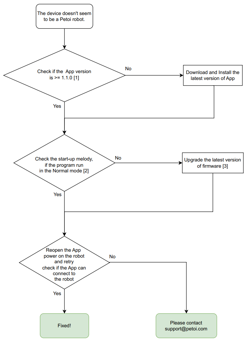 When I use the mobile App to connect to the robot, it indicates "The device doesn't seem to be a Petoi robot".