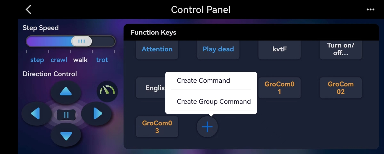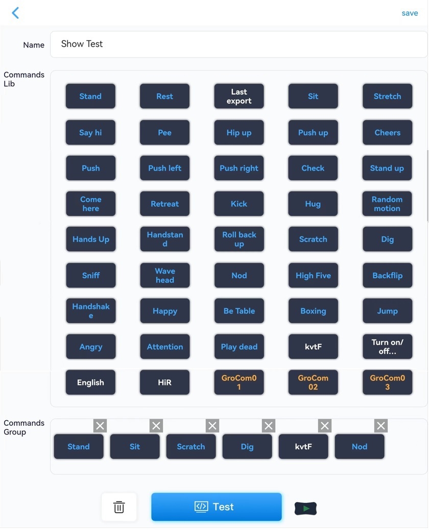 In the control panel, you can control the robot to perform various postures, behaviors, and gaits.