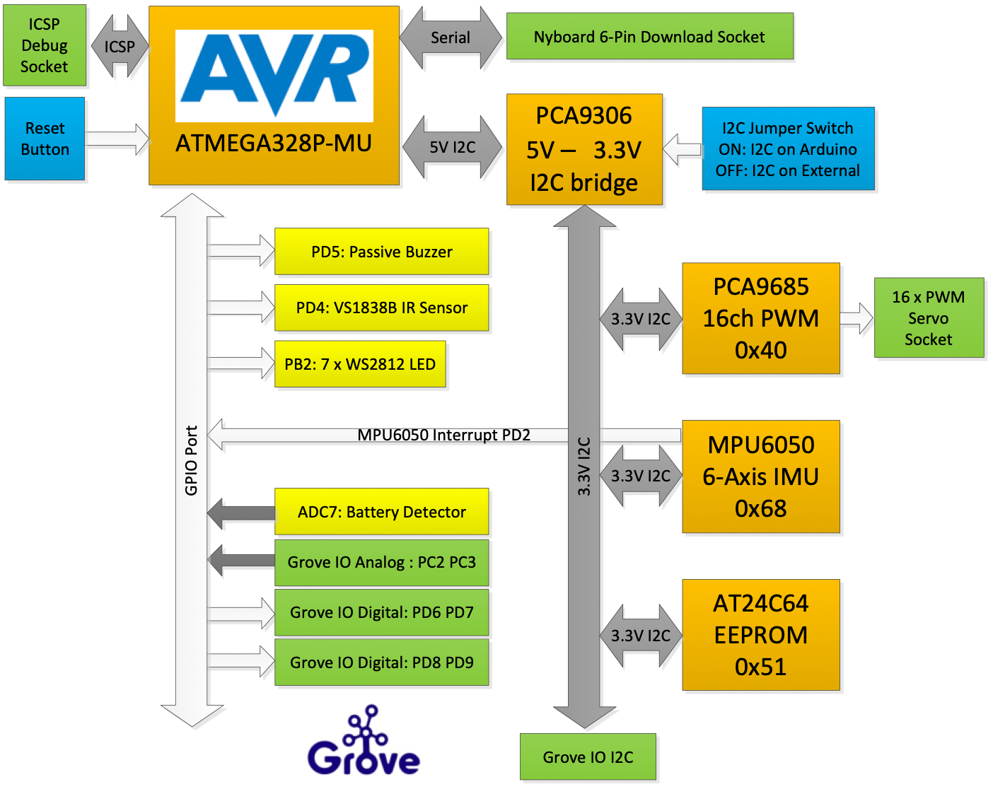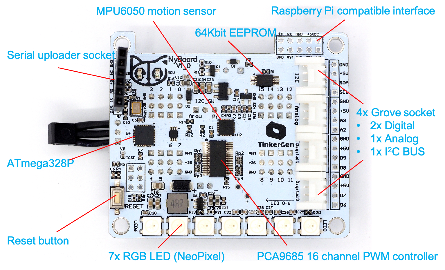 NyBoard V1 is an upgraded version considering the users' feedback on NyBoard V0. It's compatible with previous versions, yet has some new design to make it easier to use.