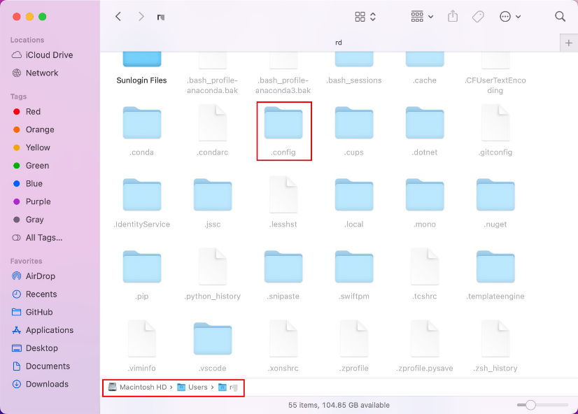 The folder .config is a hidden directory on MacOS/Linux but can be visited in the terminal or through a specific view setting: