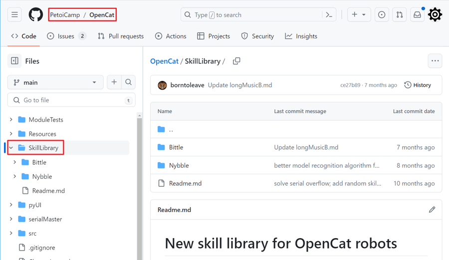 Tips: you can also copy & paste the SkillLibrary folder from the source code of the OpenCat project on GitHub to the .config/Petoi directory. Therefore, you can use some sample skills for your program, and there is no need to use the export function in the Skill Composer.