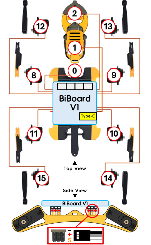 Some customers already have Bittle X (BiBoard V0), which can also be equipped with a robotic arm. The joint index is as follows.