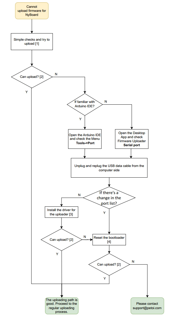 For more information, please refer to: https://docs.petoi.com/arduino-ide/upload-sketch-for-nyboard#setup-process