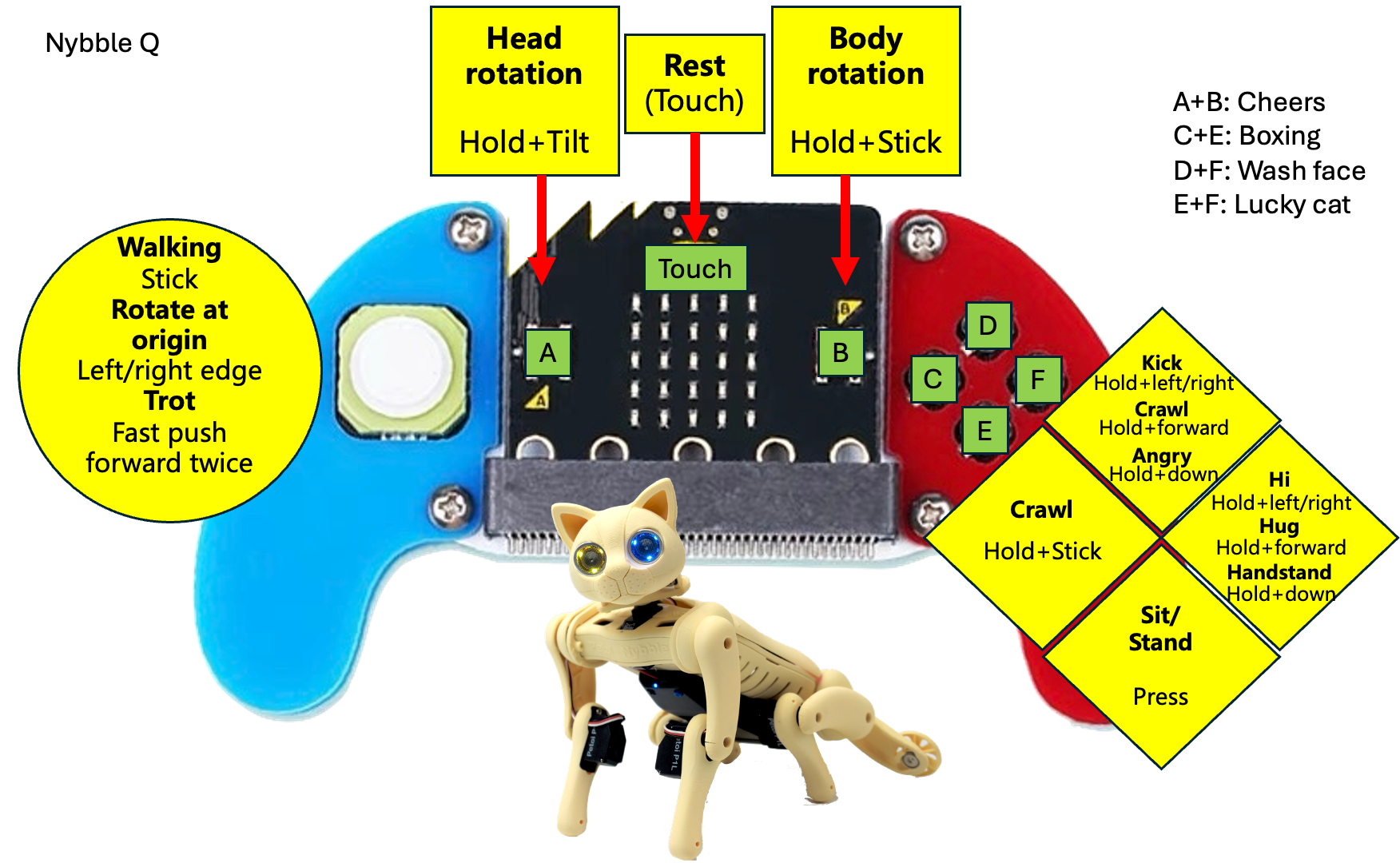 The Joystick's source code is now open-sourced. It can control Bittle X, Bittle X+Arm (Bittle with a robotic arm), and Nybble Q. For more information, please refer to our GitHub repository.