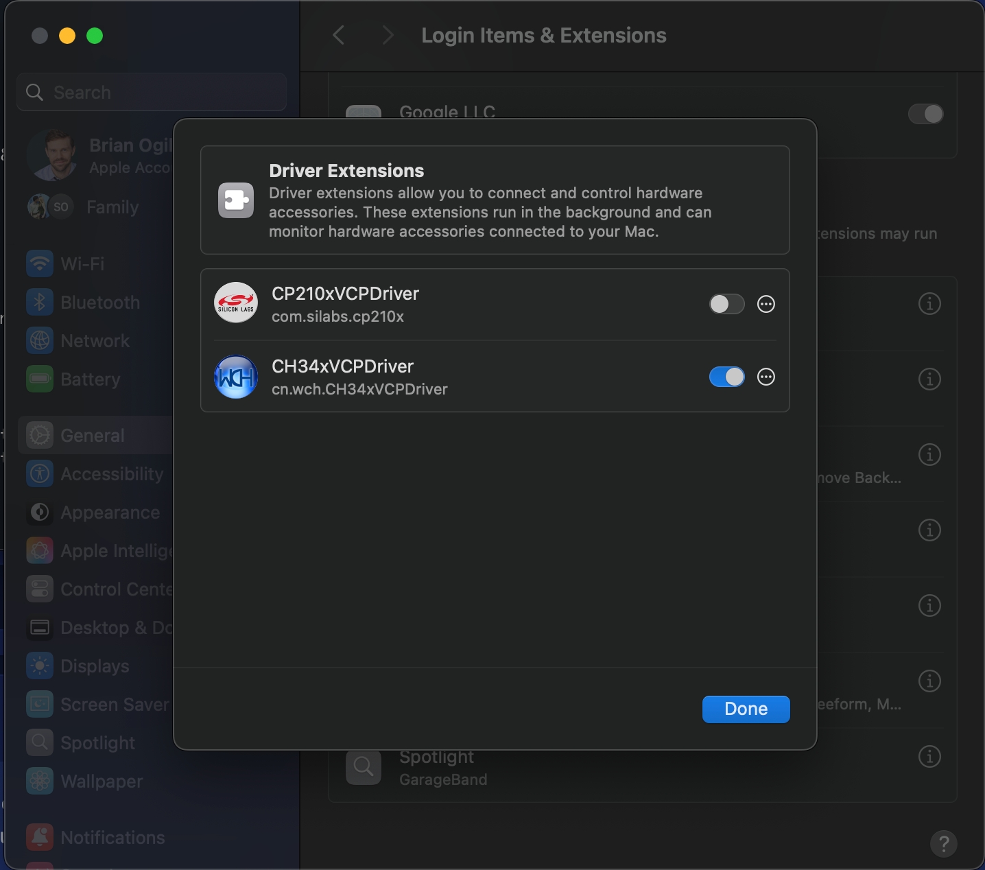 Settings -> General -> Login Items & Extensions -> Driver Extensions