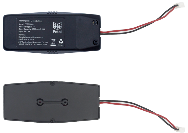 The servos require 7.4~8.4V external power to move. Our customized Li-ion battery has a built-in charging and protection circuit. Clicking the battery's button will show its status. Blue light indicates it has power, and red means the power is low. Long-pressing the button for 3 seconds to power on/off the battery.